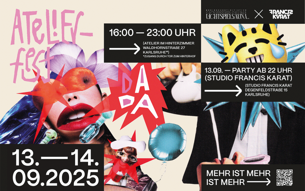 Am 13. und 14. September 2025 öffnen sich die Ateliers der Medienkunstinitative Lichtspielsauna und des Kollektivs Francis Karat in der Oststadt und verwandeln sich in ein dadaistisches Paralleluniversum.