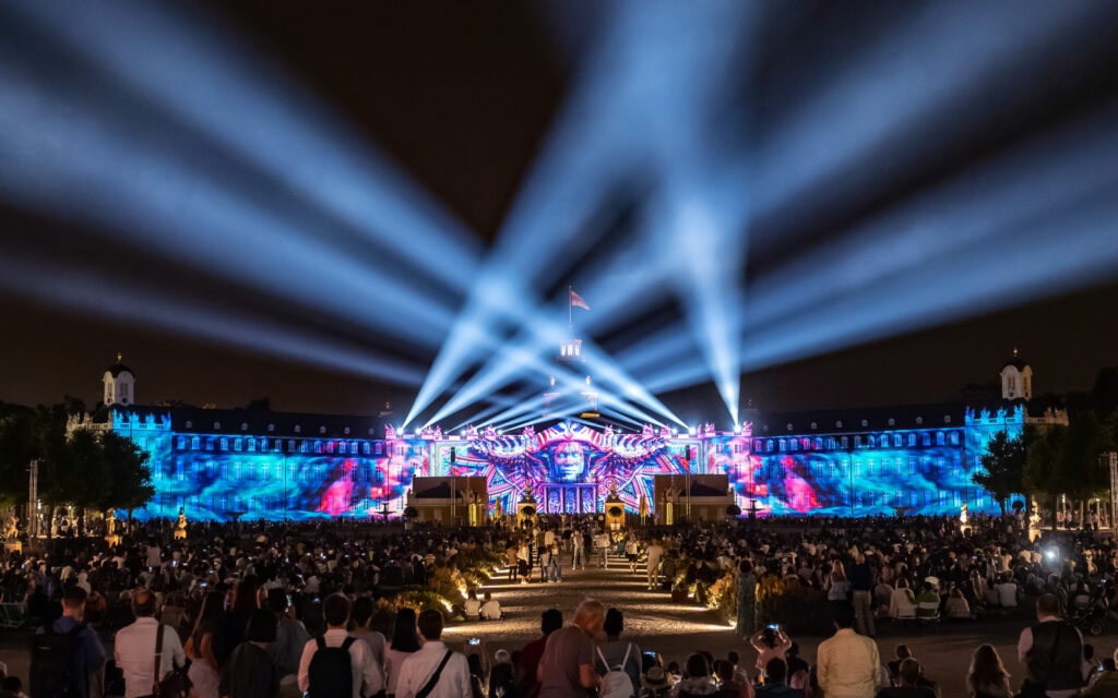 Die SCHLOSSLICHTSPIELE Karlsruhe kehren auch in diesem Jahr wieder auf die barocke Fassade des Karlsruher Schlosses zurück und verwandeln sie in ein digitales Kunstwerk.