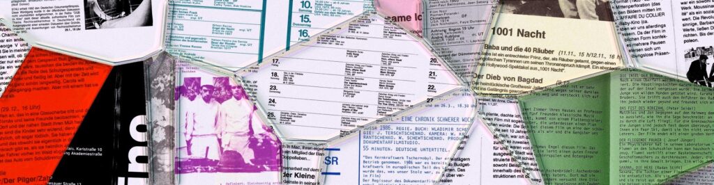 Welche Filme wurden in den letzten 50 Jahren in der Kinemathek gezeigt? In welchen gesellschaftlichen, politischen, künstlerischen und historischen Kontexten wurden sie präsentiert? Und wie erging es dem Kino selbst? Mithilfe eines berührungsempfindlichen Bildschirms können Besucher*innen des Foyers Einfluss auf die Zusammenstellung nehmen. So können zum Beispiel bestimmte Zeitspannen in der Geschichte auf einer Zeitachse angewählt oder einzelne Facetten vergrößert werden, um mehr über deren Inhalt zu erfahren.